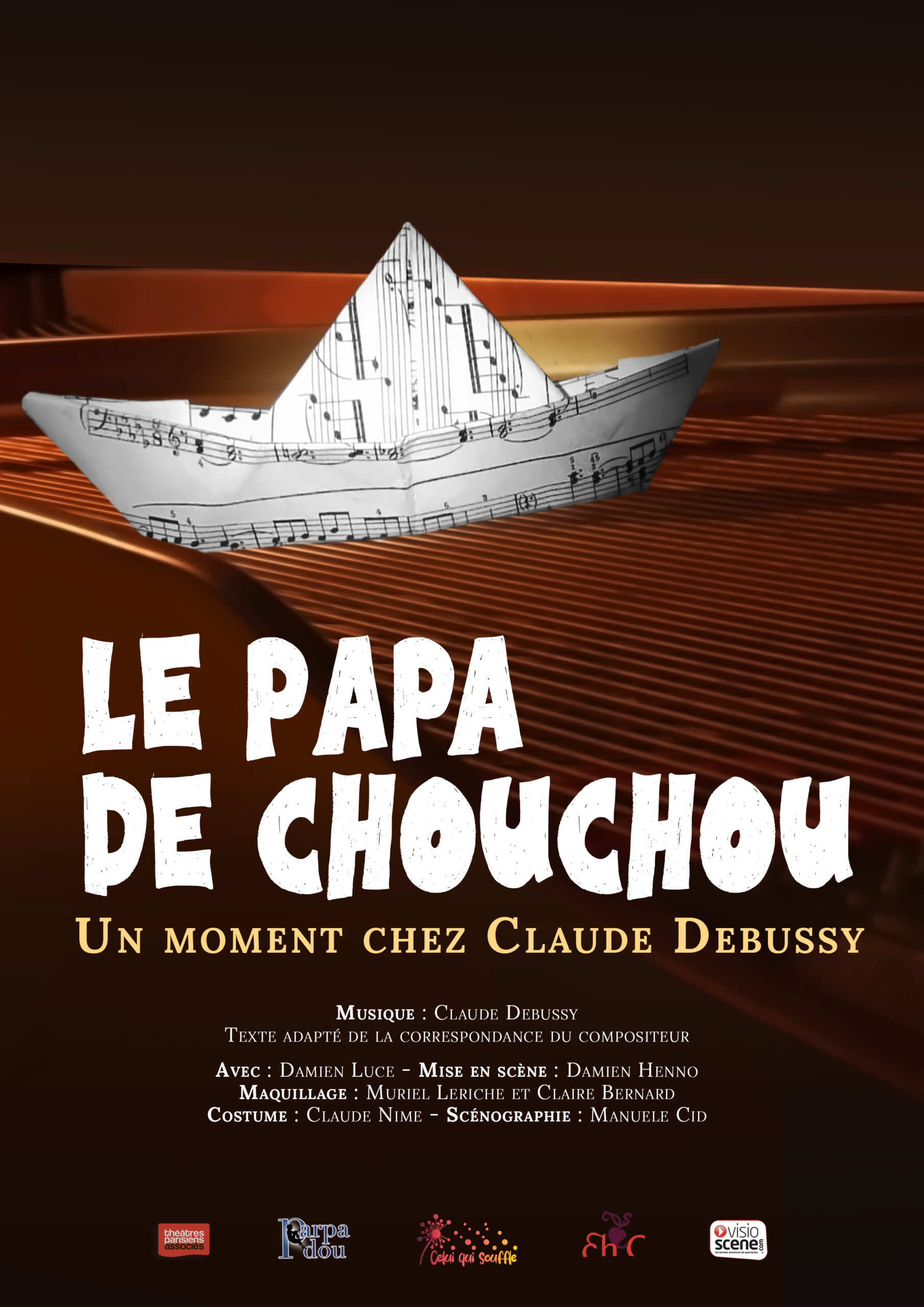 On connaît le compositeur, mais connaît-on l’homme? Le Papa de Chouchou est une plongée dans l’intimité du compositeur. Un monologue bâti à partir de la riche correspondance de Debussy, et entrecoupé de musique pour piano. À la manière des salons musicaux de l’ancien temps, Claude Debussy reçoit les spectateurs chez-lui, et leur parle de sa musique, de la guerre, de sa maladie, de sa fille, tout en leur jouant ses compositions au piano. La convivialité du spectacle, son caractère interactif, permet au public d’entrer dans l’intimité de Debussy, et de découvrir son univers.